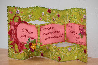 Вот такая получилась открытка. Одной было скучно делать и я собрала Скрап-цепочку на Скрап-инфо. Все работы можно посмотреть здесь